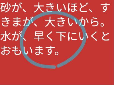 〇今日の理科で、粒が大きい方がさっとしみ込みこんだので、粒が大きい方にしました。