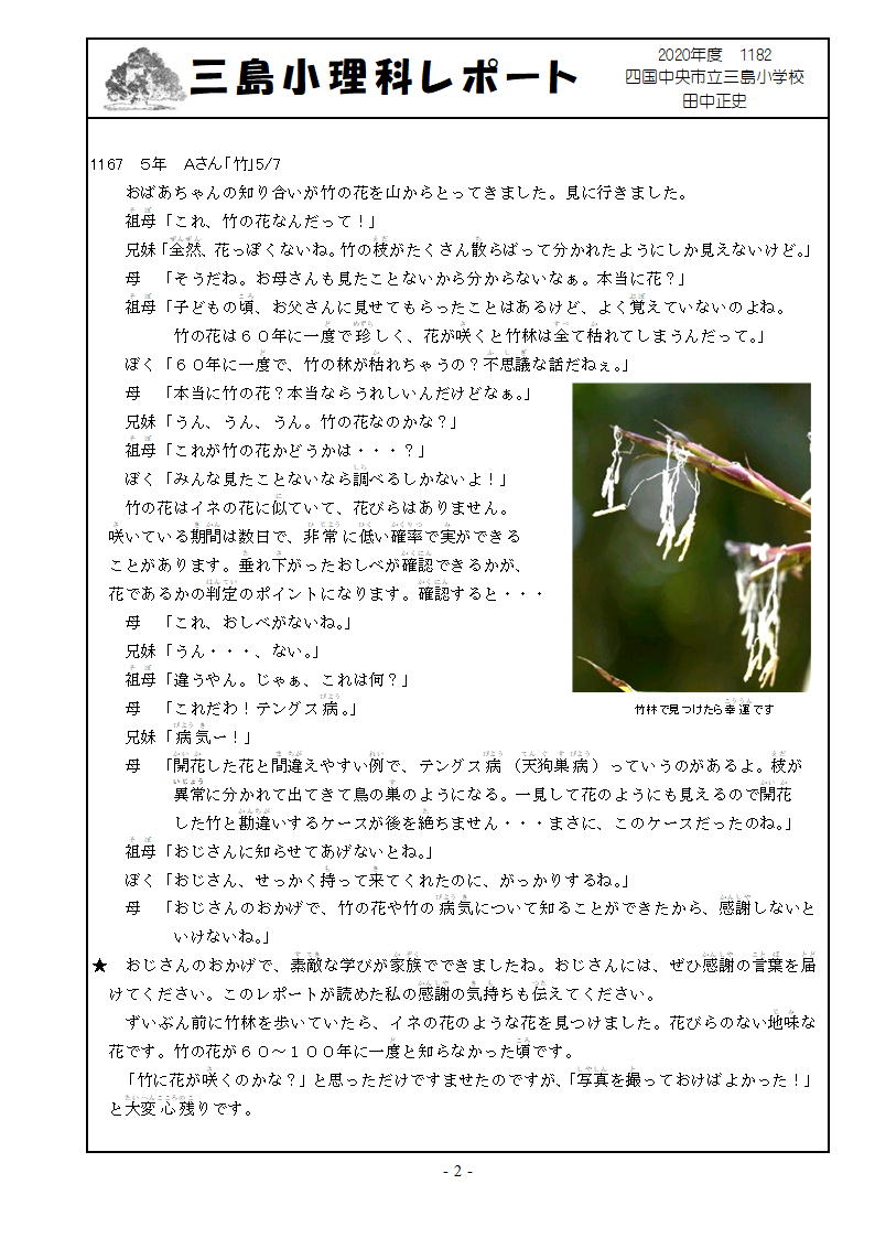 でも、このレポートは、タケの花ではないことから学ぶレポートです。