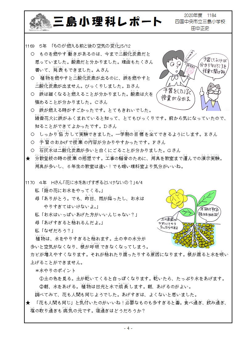 1169 5年「ものが燃える前と後の空気の変化」 久しぶりの授業感想の紹介です。