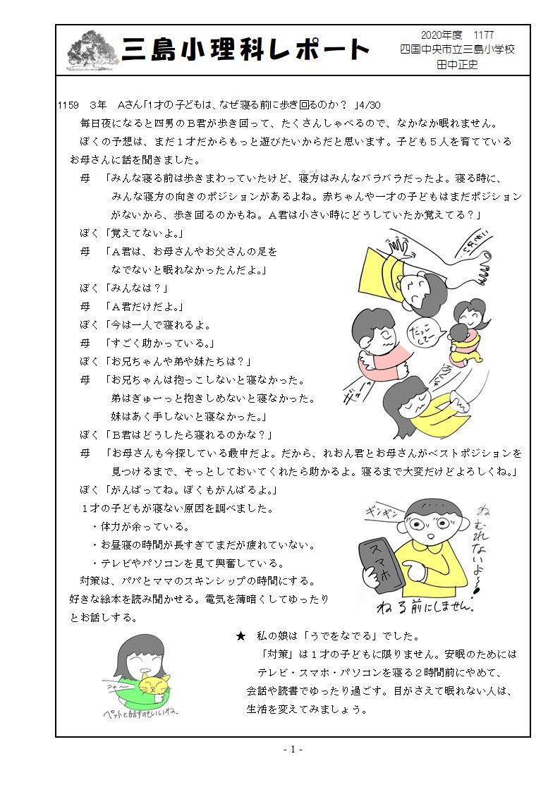 1177 2020年5月25日 06時00分 rr1177.pdfgrr1177.jpg 1159 1才の子どもが寝る前に歩き回る理由 寝るときのクセが一人一人違っていて面白い。私は末娘の時しか覚えていません