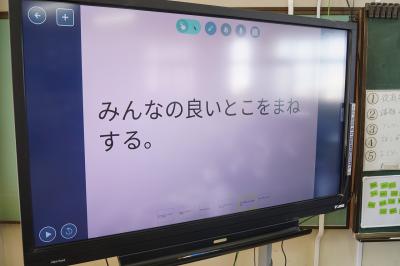 友達の良いところをまねをして、あたたかい学校にしよう。ということは、良いモデルがクラスの中にいるということですね。このように、友達を尊敬し自分を高めようという意見が出ること自体がすばらしいと感じました。全ての児童が学びやすい教育のユニバーサルデザイン化には、児童同士の認め合い高め合いが重要です。児童の意見を聞いて、とてもうれしい気持ちになりました。(^^)/