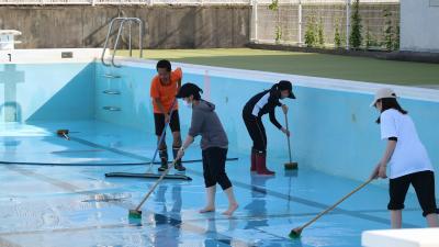 2023年5月28日 15時00分26日(金)午後、6年生がプール掃除をしました。